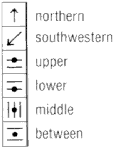 Although clues are always written out in English (or the local language) for beginners' courses, clues for intermediate and advanced courses are given as symbols in a table format. To the uninitiated, this can look like hieroglyphics, but the system is quite simple to master and is more compace and specific than a written description - and has the advantage of being easily understood the world over.